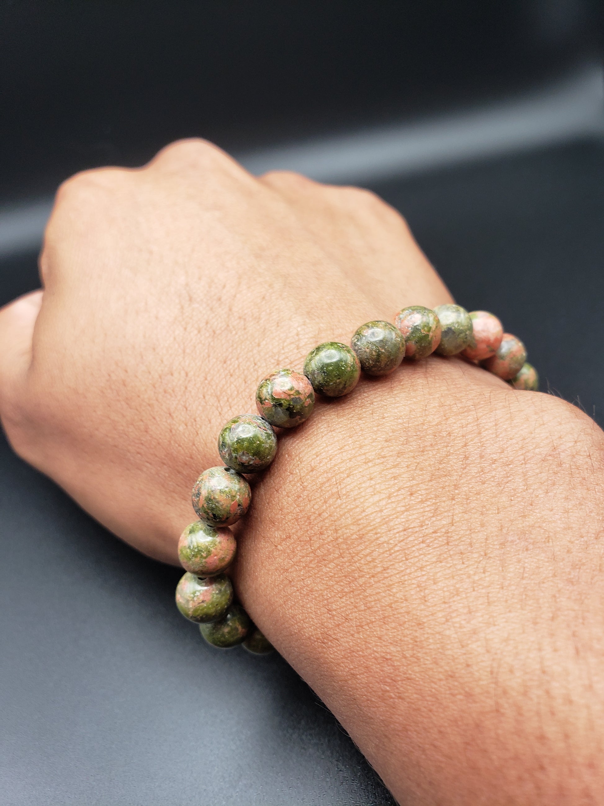 A unakite bracelet is believed to offer emotional healing and balance. It promotes self-love, encourages spiritual growth, and helps release negative energies. Unakite's calming properties support stress relief, while its nurturing vibrations enhance emotional resilience, fostering harmony in relationships and overall well-being.